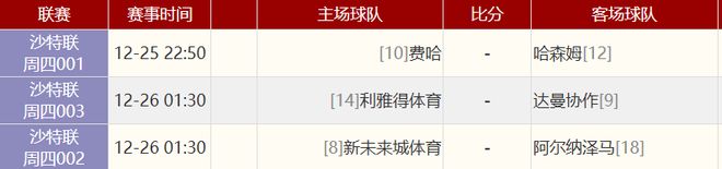 其他赛事比分:
